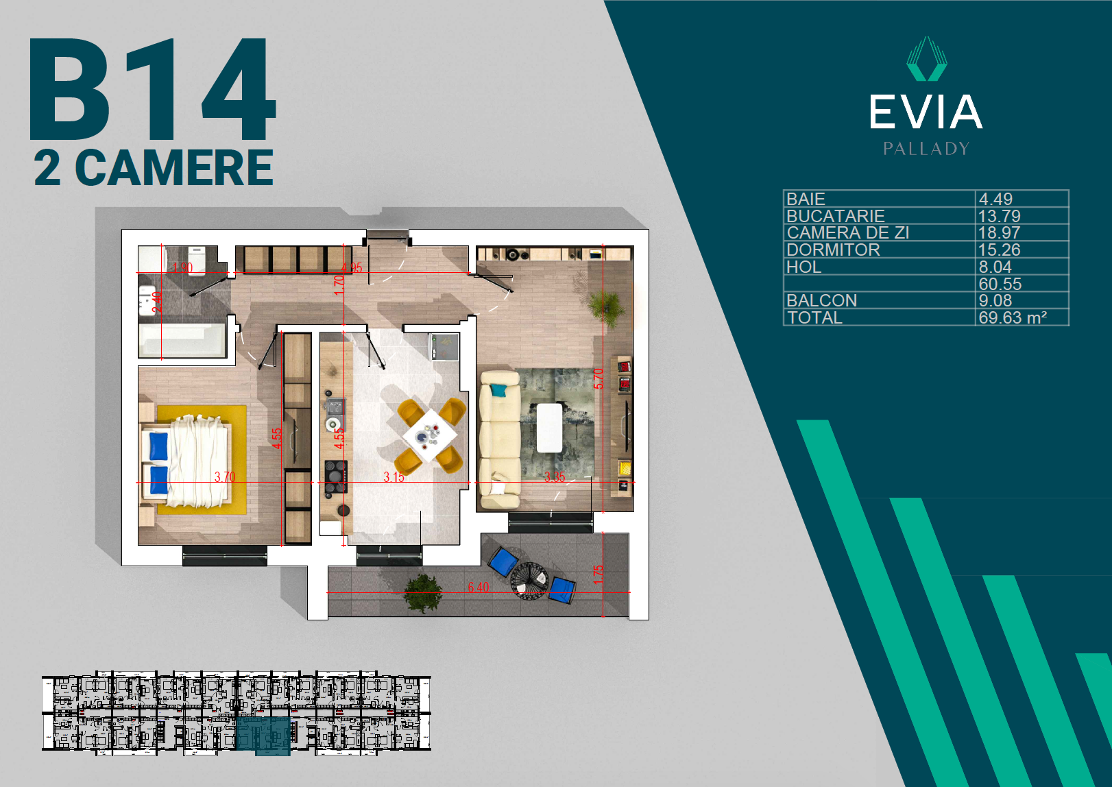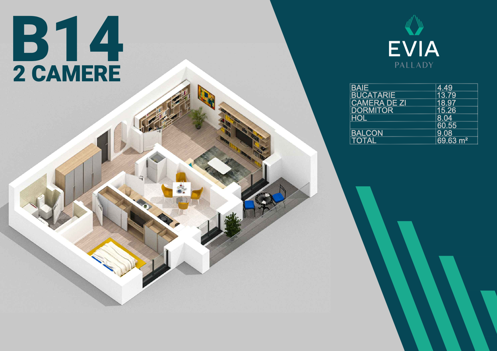 Apartament localizat în ansamblul Evia Pallady, în proximitatea stației de Metrou Nicolae Teclu. Apartamentul se predă cu toate finisajele montate - gresie, faianță, parchet, uși interioare și ușa exterioară, baia complet mobilată, centrala termica 24kw în condensație, încălzire prin pardoseală.